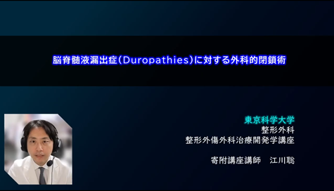 「脳脊髄液漏出症(Duropathies)に対する外科的閉鎖術」東京科学大学 整形外傷外科治療開発学講座 寄付講座講師 江川聡 |