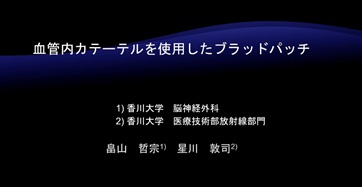 「血管内カテーテルを使用したブラッドパッチ」畠山 哲宗 香川大学医学部脳神経外科 |