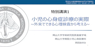 | 5)小児の心身症治療の実際〜外来でできる心理検査から考える〜 岡田あゆみ 岡山大学学術研究院医歯薬学域 小児心身医療科 |